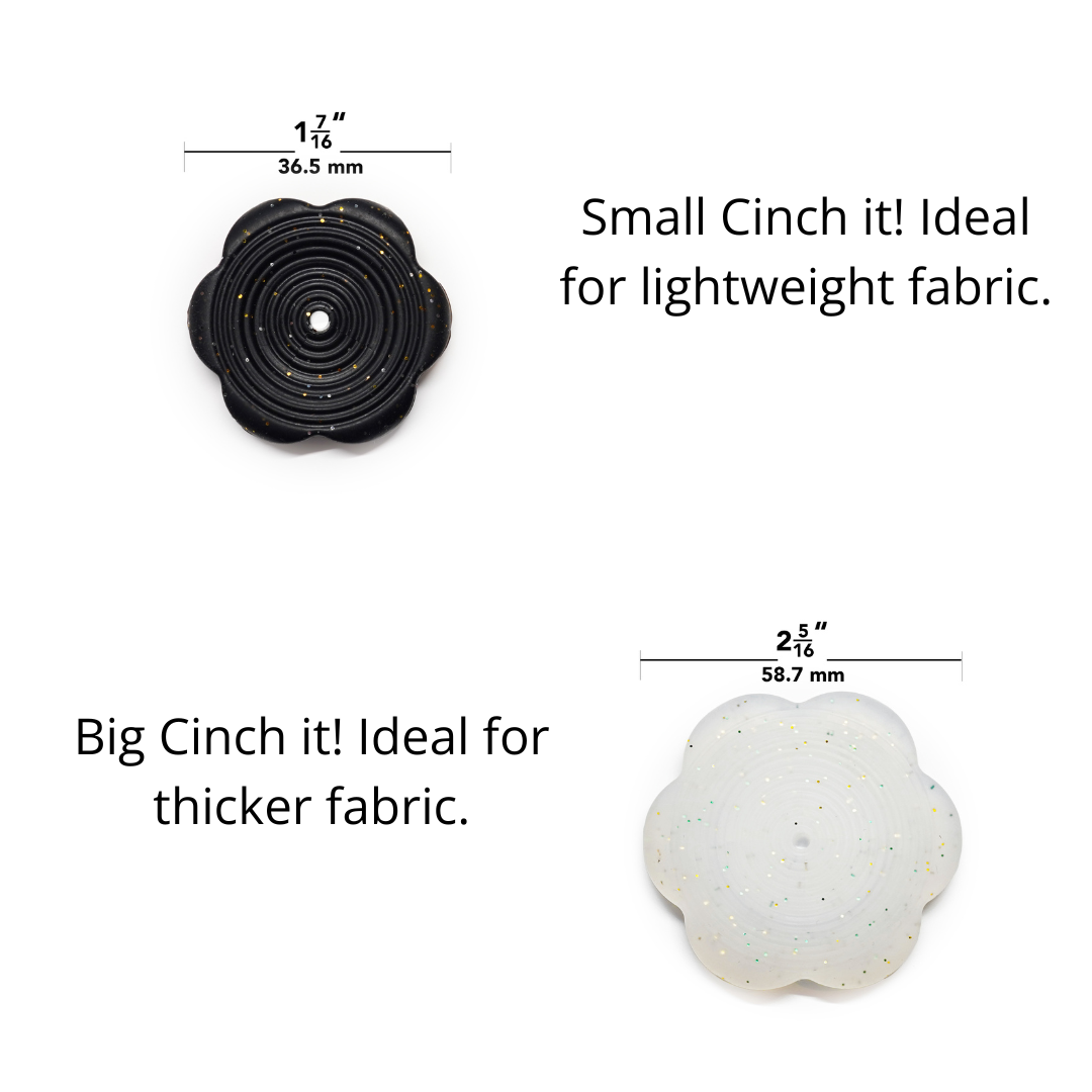 THE ORIGINAL Cinch It! Invented by mom of 4, Sofia Denman. The ultimate fashion fix accessory that revolutionizes the way you wear your favorite garments, perfect on dresses, blouses, t-shirts, scarves and more… With its durable silicone construction, Cinch It! allows you to instantly adjust the fit and style of any clothing item. Whether you want to cinch a loose dress, create a flattering waistline, or transform the silhouette of your outfit, Cinch It! is here to make it happen with ease. Say goodbye to ill-fitting clothes and hello to a wardrobe that is tailored to perfection. With its versatile design and the convenience this single black sparkle cinch clip, Cinch It! accommodates different garments and body types, ensuring that you always have the perfect solution at hand. Get ready to transform your style effortlessly and confidently, because with Cinch It!, fashion becomes uniquely yours and you can truly love your style - every day!